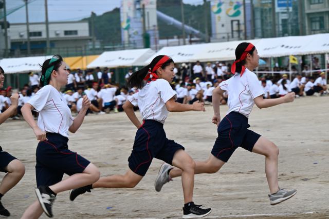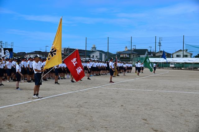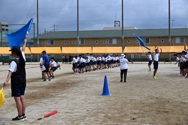 まずは開会式の練習からスタート。紅青黄緑の旗が並ぶと、いよいよ運動会だなと気分も盛り上がってきますね。
