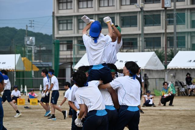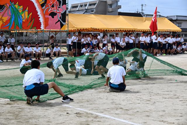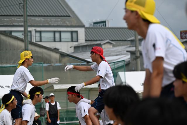 運動会でおなじみの騎馬戦。お互い相手の出方を探りつつ、徐々に戦いの場へ。