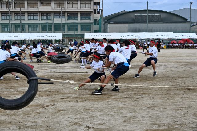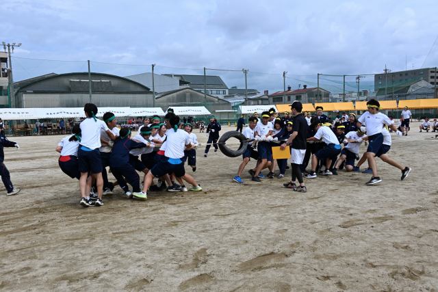 5年生によるタイヤ奪い。同学年同士の容赦ない戦いです。
