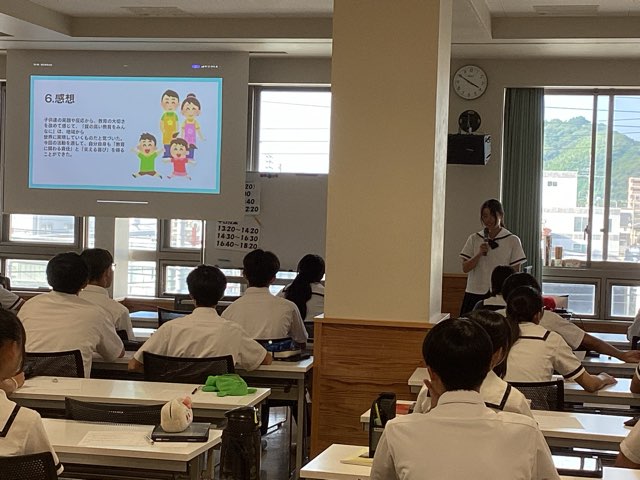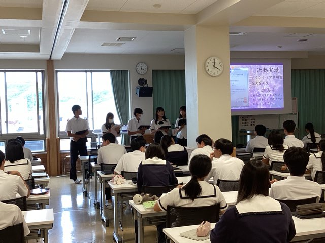 クラス代表の2組、計8組の生徒が学年代表で発表しました。