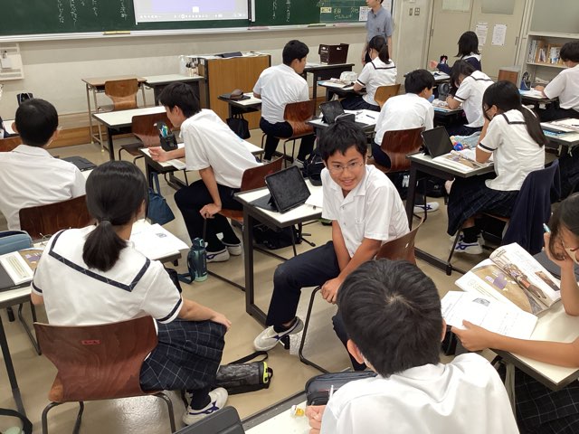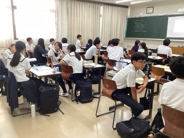 「平和とはなにか」「なぜ戦争が起こるのか」という問いかけから、「千畝さんはどんな気持ちだったか」「自分たちができることはないのか」という問を出し、生徒一人一人が当事者意識を持てるようにしていました。グループワークで互いの意見を交換し、考えを深められたかと思います。