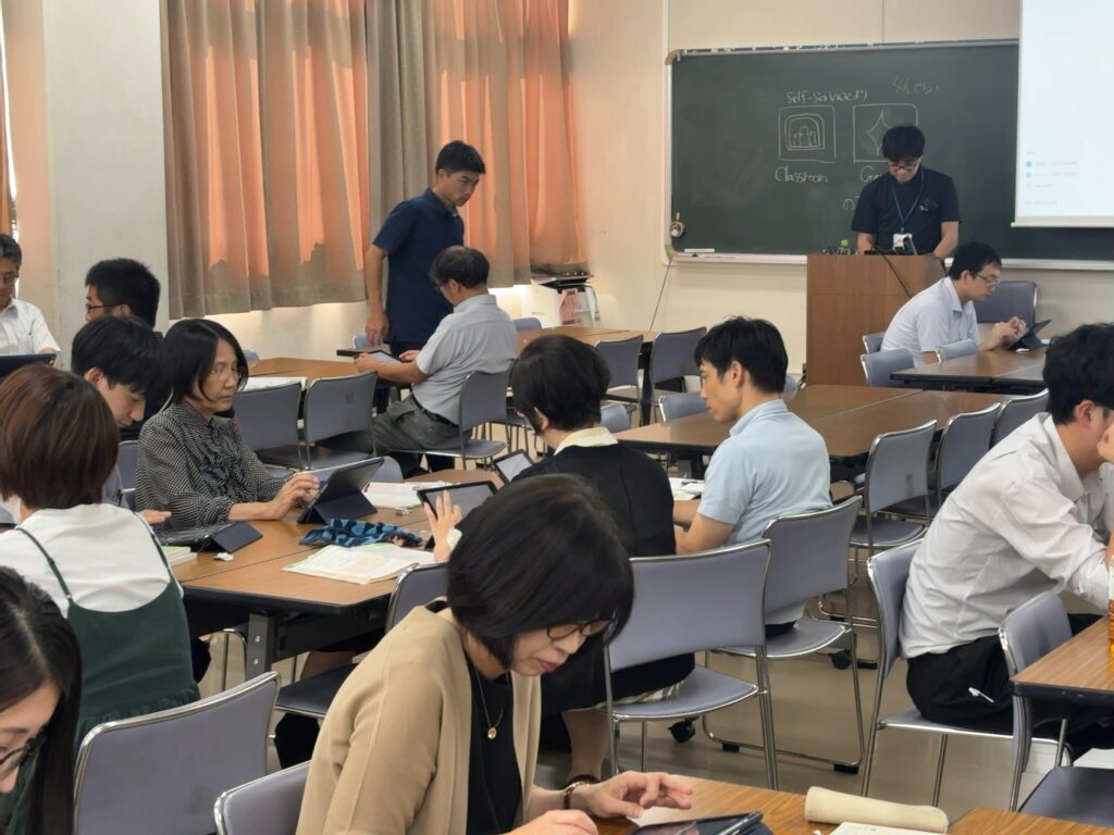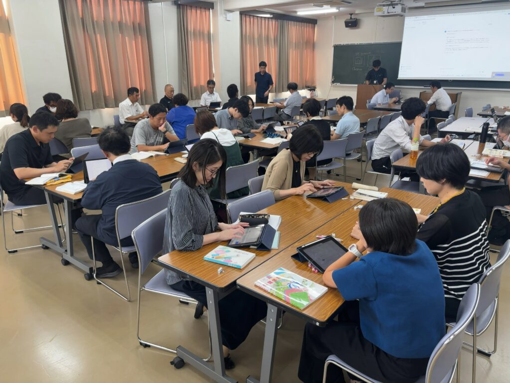 先生方も和気藹々(わきあいあい)と周りで相談しながら、研修を終えることができました。これから授業でも活用できそうです。