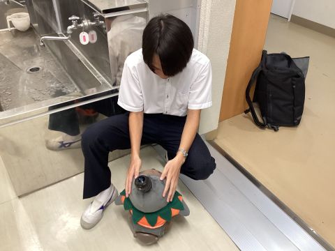 職員室前のLOVOTと戯れ、心を癒している生徒さん、何を話しているのでしょう?