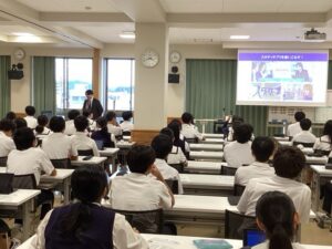 10月20日(月)に前期課程3年生を対象に、スタディサプリ活用講座を開講しました。11月に実施予定の進研模試(先取り)対策のために、スタディサプリをより効果的に活用する方法の学習です。すでに1年生、2年生で活用してきた人も多いのですが、先輩方からの声を参考に、自分に合った活用方法を改めて考える機会となりました。基礎学習を中心に進める人、演習中心に利用する人、授業前に予習として動画を活用する人など、複数のパターンを紹介していただきました。