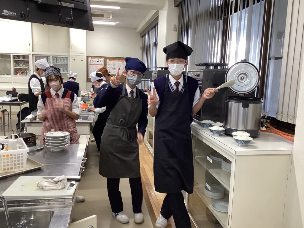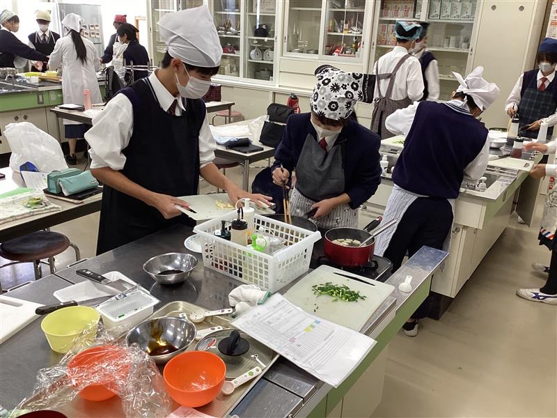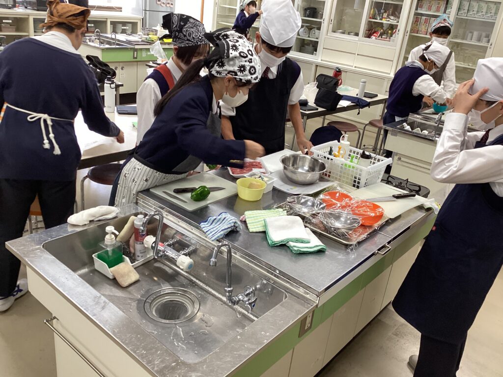 調理方法を間違えないように、レシピを見ながら作業している様子、分量の測り間違いが無いようにしている様子を見ることができました。調理中に、洗えるものは洗うことができる生徒もいました。