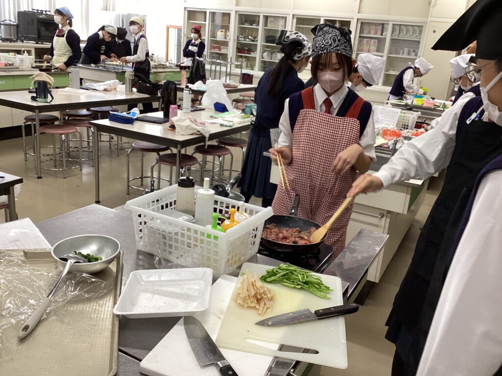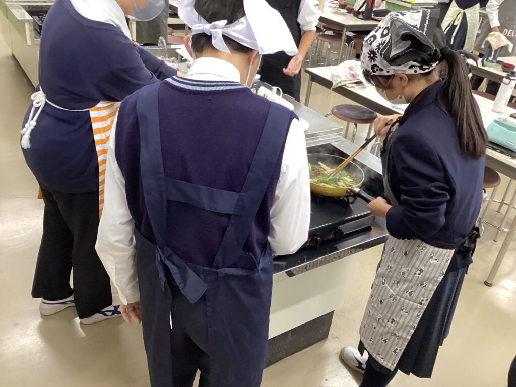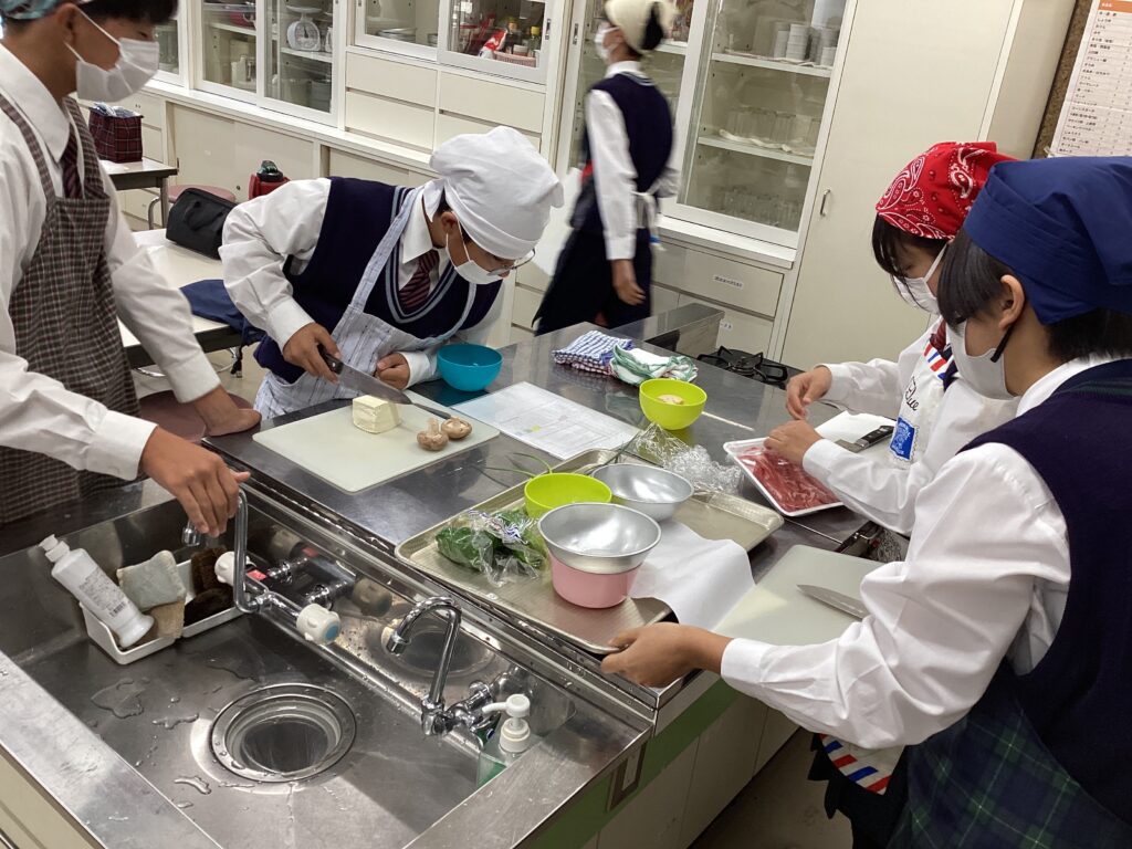 調理方法を間違えないように、レシピを見ながら作業している様子、分量の測り間違いが無いようにしている様子を見ることができました。調理中に、洗えるものは洗うことができる生徒もいました。