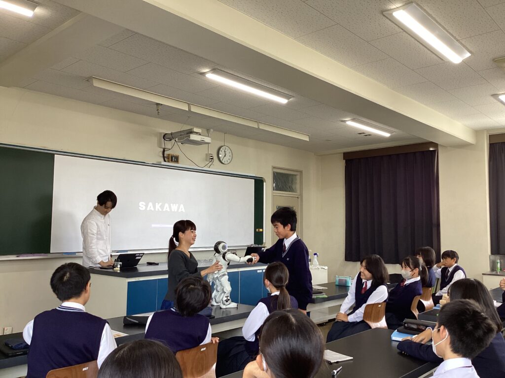 三菱総研DCSのご協力のもと、1年生がコミュニケーションロボット『NAO』を活用した特別授業を体験しました。