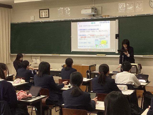 17の目標のうち自分が興味のある分野について、解決したい社会問題からテーマを決めて現状について調べました。そして、その解決策と自分にできることを考えて発表し、より良い社会を実現するための訴えをしました。