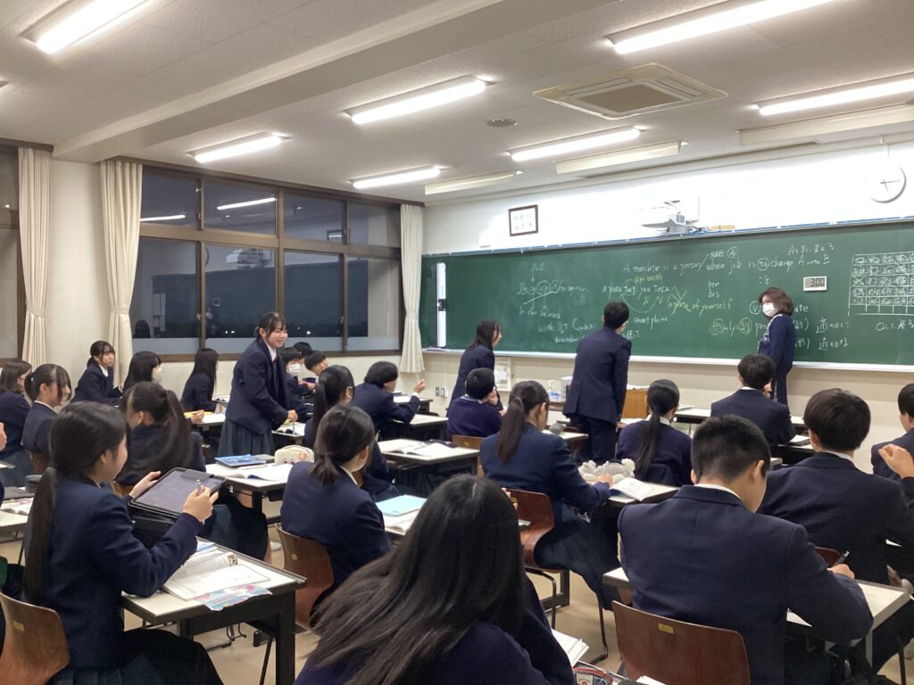 のぞいてみると、学年主任の先生のもとで英語の学習会が行われていました。わからない問題をそのままにしない!互いに教え合い、みんなで解決をしよう!とする姿が印象的でした。