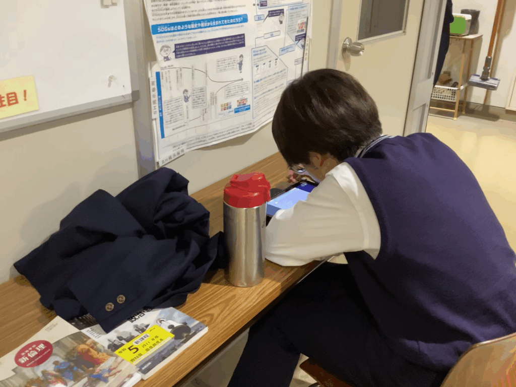廊下では、落ち着く場所を求めて自主的に学習している姿も見られました。
