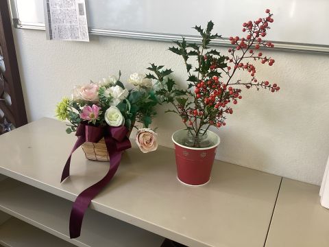 靴箱の上にきれいに飾られていました植物たちです。図書館は皆が過ごしやすいように、空間を整えようと工夫してくれている人の心配りが見て取れますね。とっても上品です。