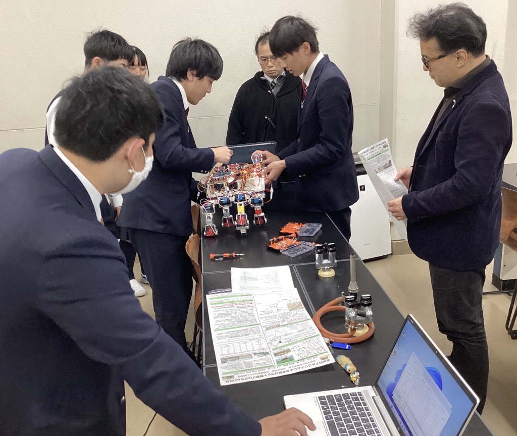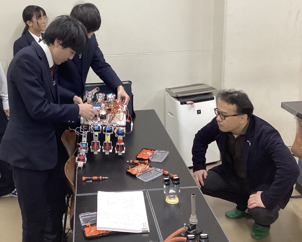 自然科学部では昨年度、「自然から学ぶ」というバイオミメティクスの考え方を用いたカニ型ロボットの研究で日本学生科学賞の「入選1等」を受賞しました。