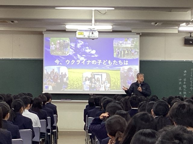 「今、ウクライナの子どもたちは」という演題で講演をしてくださり、生徒は終始真剣に聞いておりました。