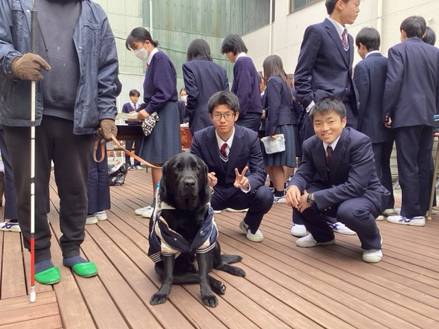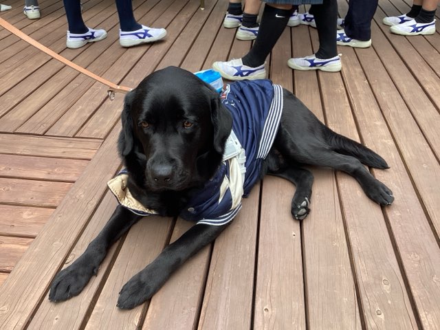 パンを食べたある生徒は、「とっても美味しかった!また買いたい。」と話してくれました。盲導犬の注意事項を確認した上で、ネイバーくんと交流した生徒は、「めちゃくちゃ可愛かった。もっと触れ合いたかった!」とネイバーくんに癒されたようでした。