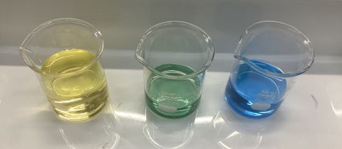 綺麗な緑色になっているビーカーがありますね!中和実験成功です!