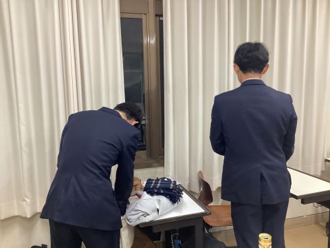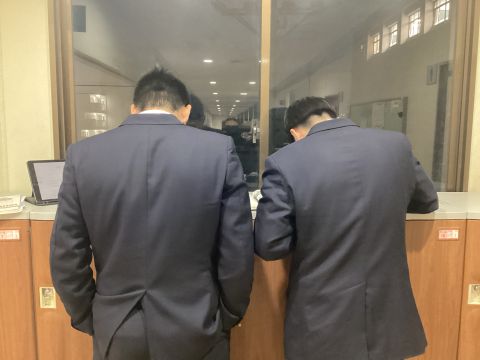 背中が集中度を雄弁に語っているようです。廊下で勉強している人は、冷えるはずですが、寒さがむしろ丁度良いのでしょうか?