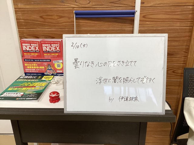 四門館には、N先生による日替わりの応援メッセージが、大学入試に向かう6年生の背中をそっと押してくれていました。