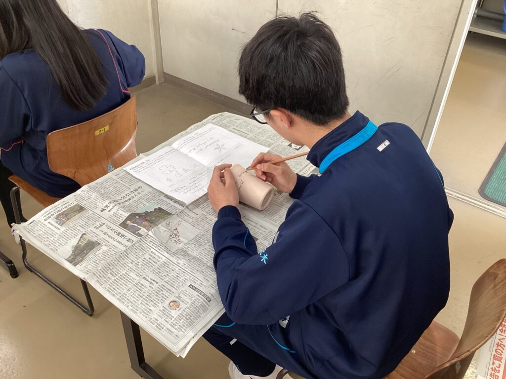2月19日(木)に本校の2年生も少年式にちなんだ少年の日企画を行い、このテーマを意識しながら、砥部焼の絵付け体験を行いました。