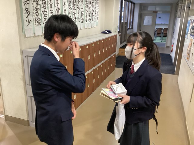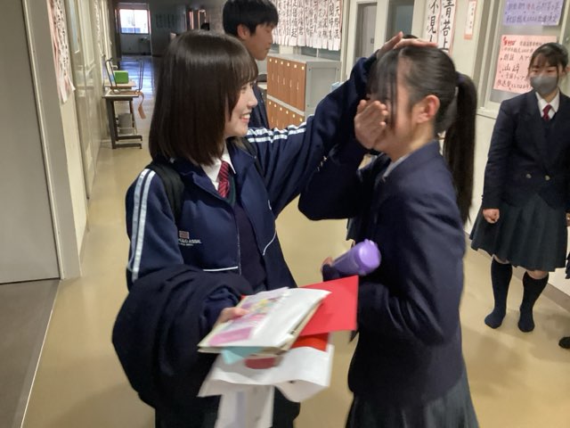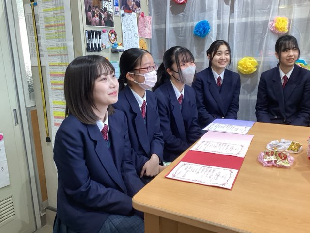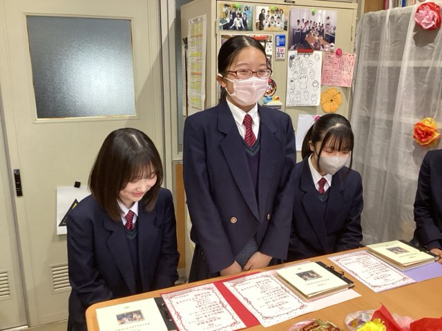 今週の月曜日24期生が厳かな雰囲気の中で卒業していきました。その卒業式の前々日に行われた放送部の卒部式の模様をお伝えします。3学期に入ってから放送部の活動は、卒部式に向けての動画撮影や先輩へのメッセージカード作りなどが大きな割合を占め、部員たちは先輩へ、感謝の気持ちを伝えようと心を込めて準備しました。