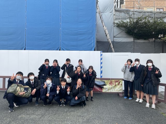 東大赤門前で記念写真!残念ながら赤門は工事中でした。卒業生とも合流。