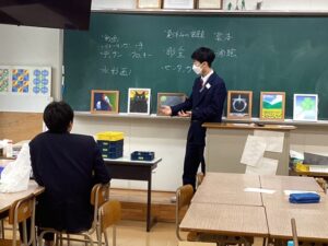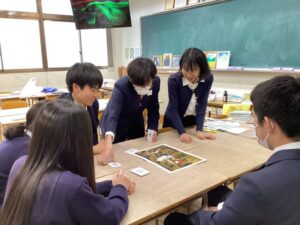 美術選択生は、一枚の絵から連想されることを自由に言い合った後、一年の総括をしていました。最後に自分が描いた油絵への想いを発表しました。