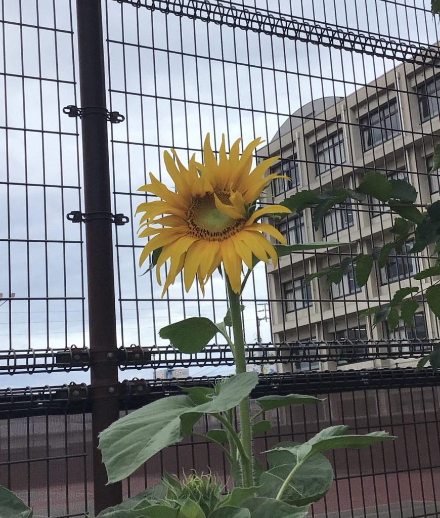 テニスコート横と欅アゴラに青々と大きく茂る向日葵。毎日、前を通り成長の様子を楽しんでいるのですが、今日見るとなんと!花が開き始めていました。満開の向日葵が観れるのはいつ頃でしょう。楽しみです♪