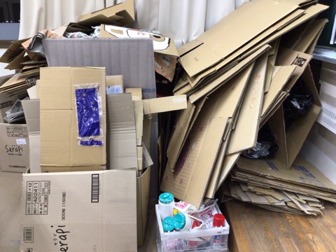 クラス企画に向けて、教室に搬入した立派な資材たちです。