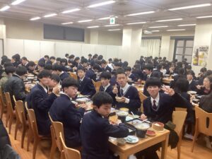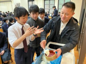 先生にご飯をよそってもらい、おかわりも美味しくいただきました。