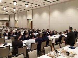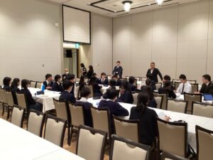 夕食会場でそのまま班長に残ってもらい、最後の班長会です。研修旅行が有終の美を飾れるように、明日1日頑張りましょう。