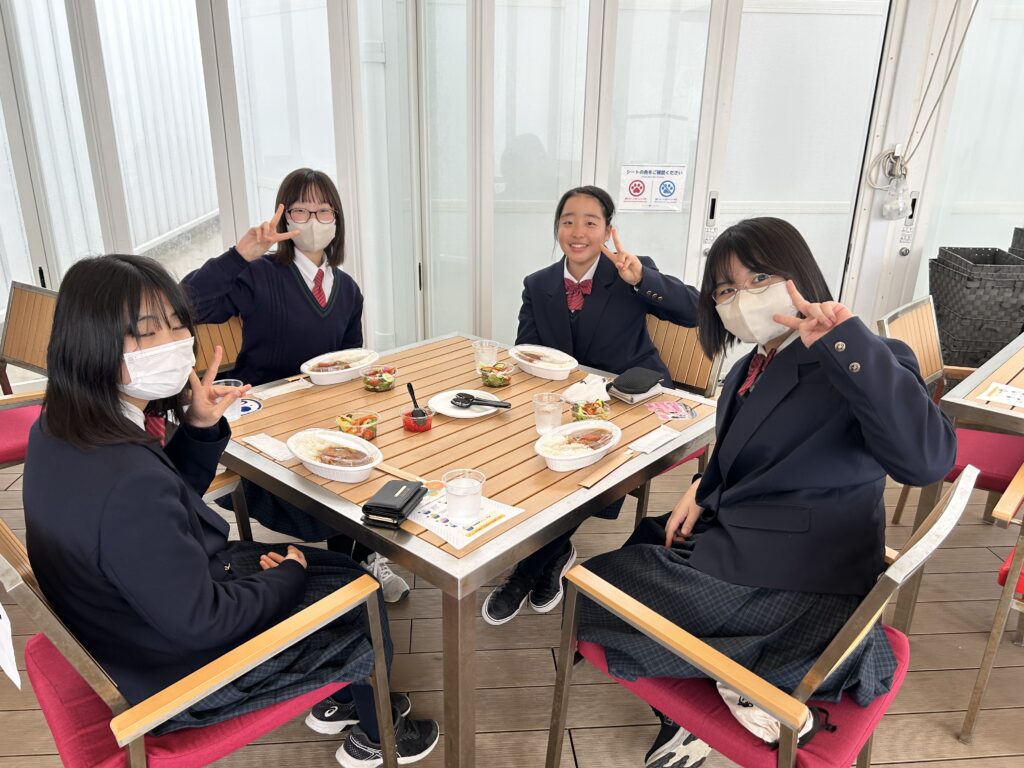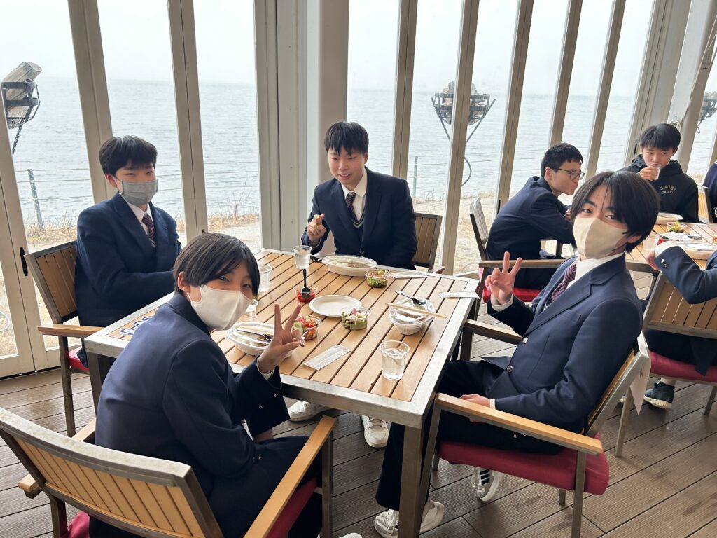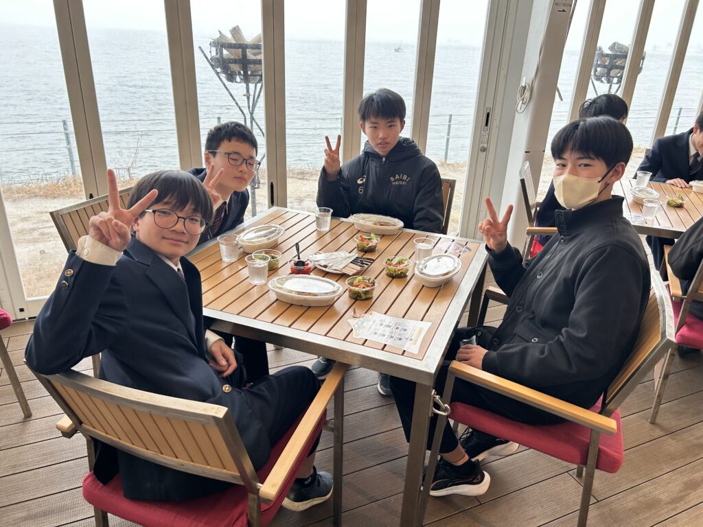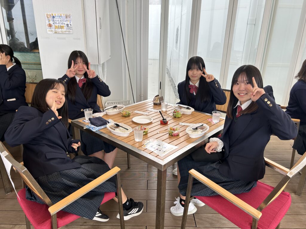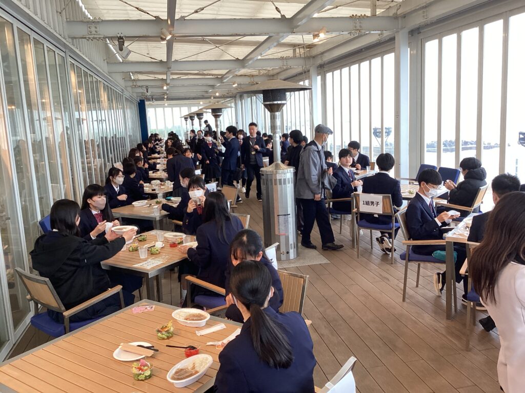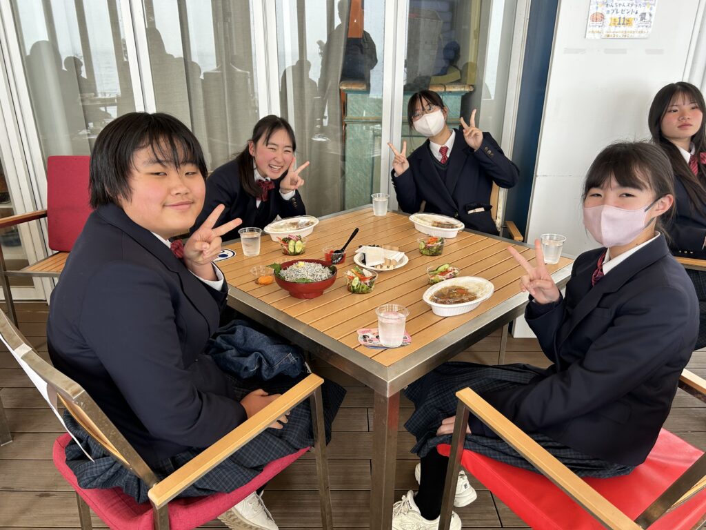 淡路島に到着しました。昼食はカレーライスとサラダです。