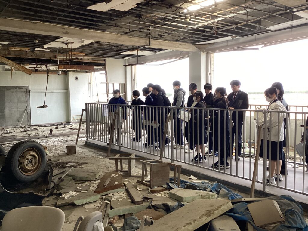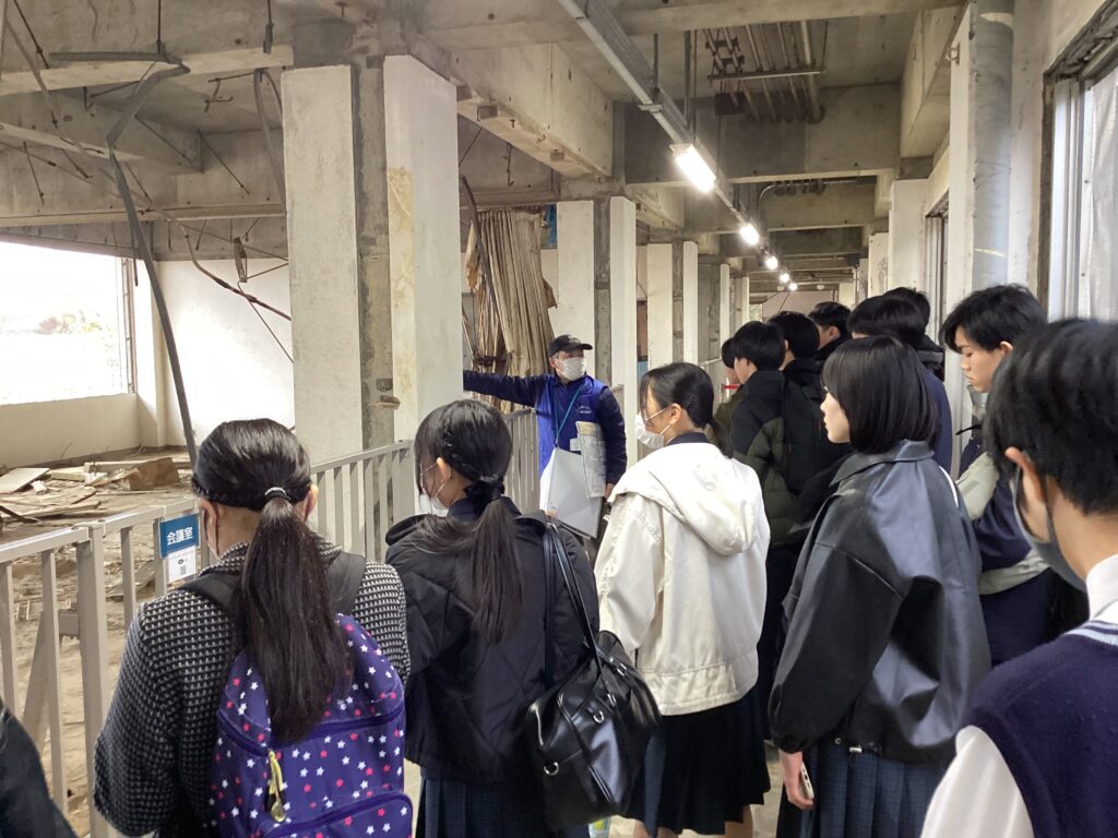 語り部の方にご案内いただき、気仙沼向洋高校旧校舎を見学しました。