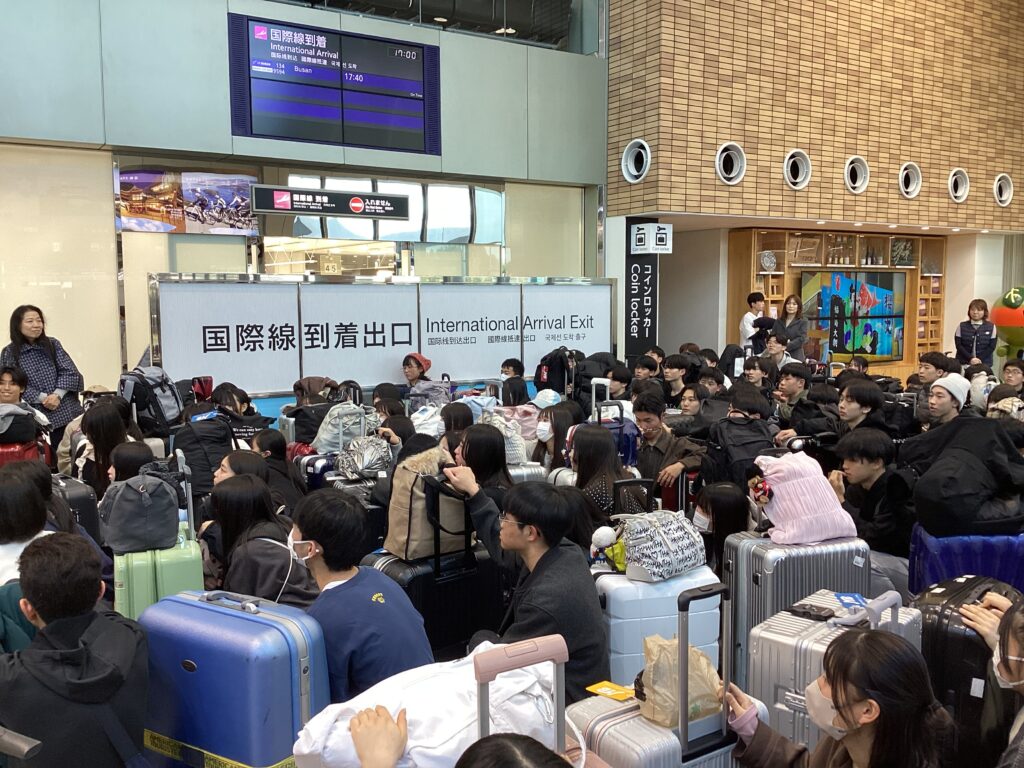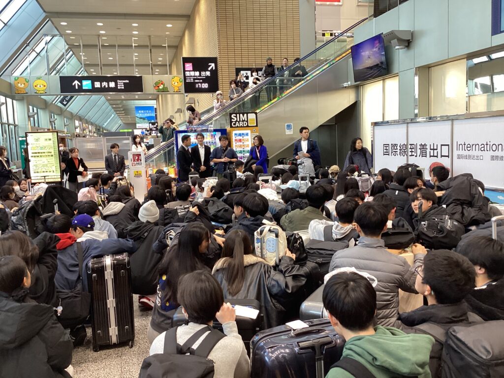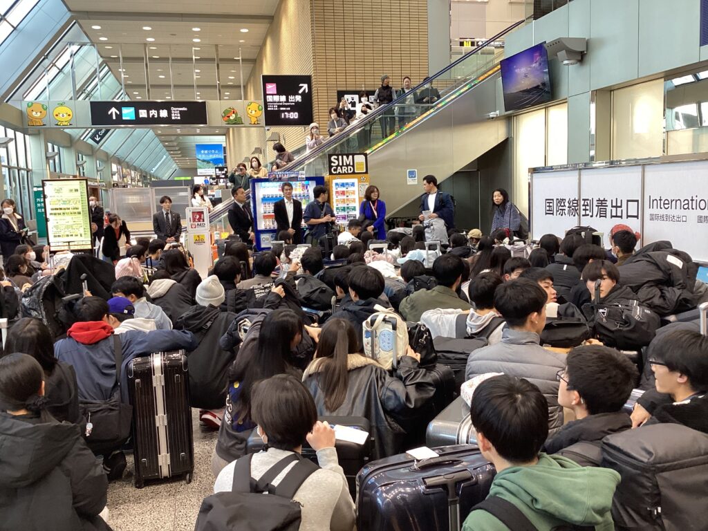 松山空港で出発式です。