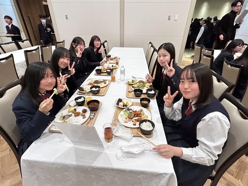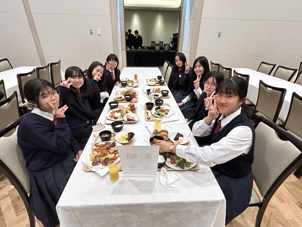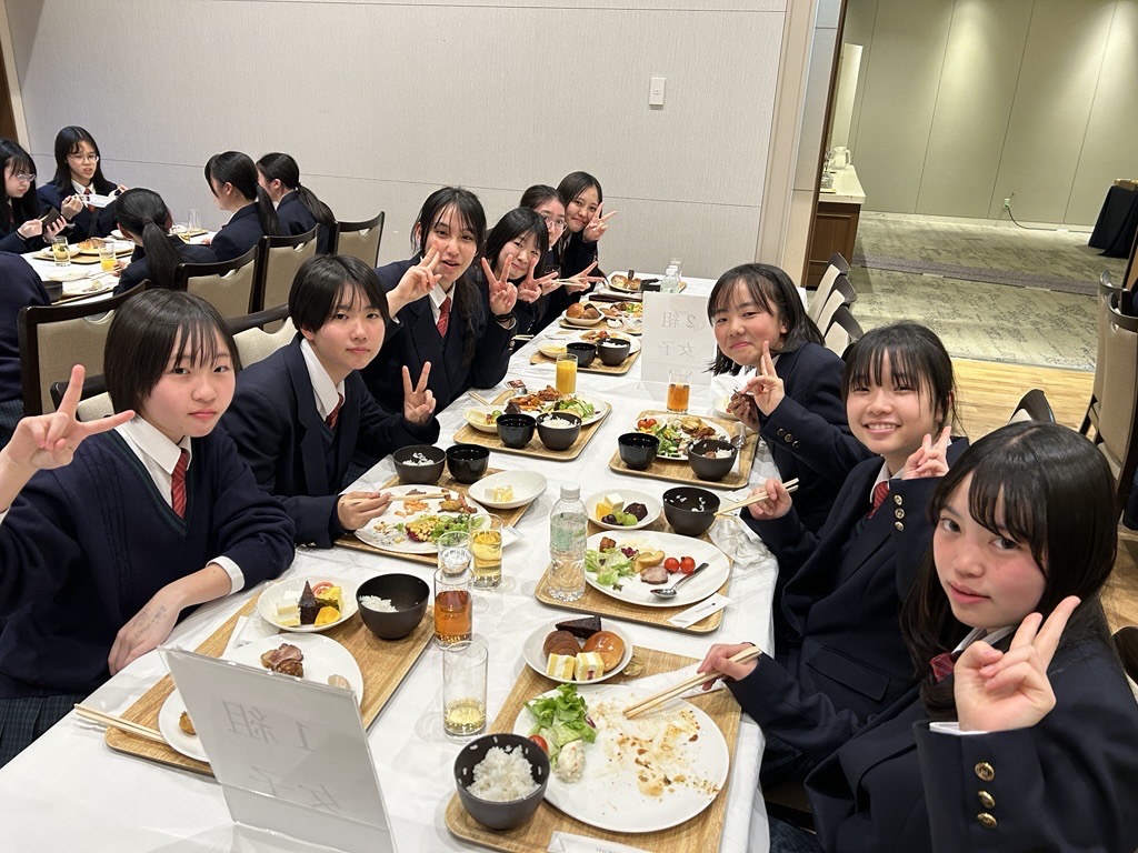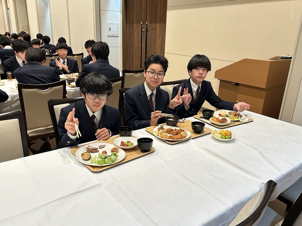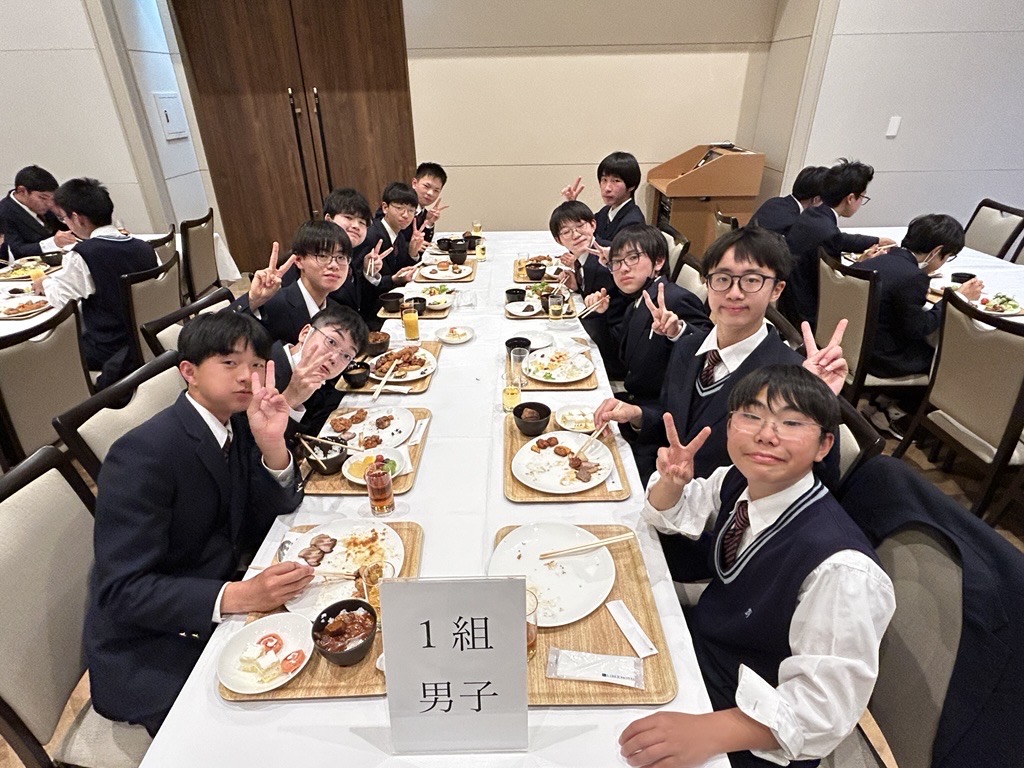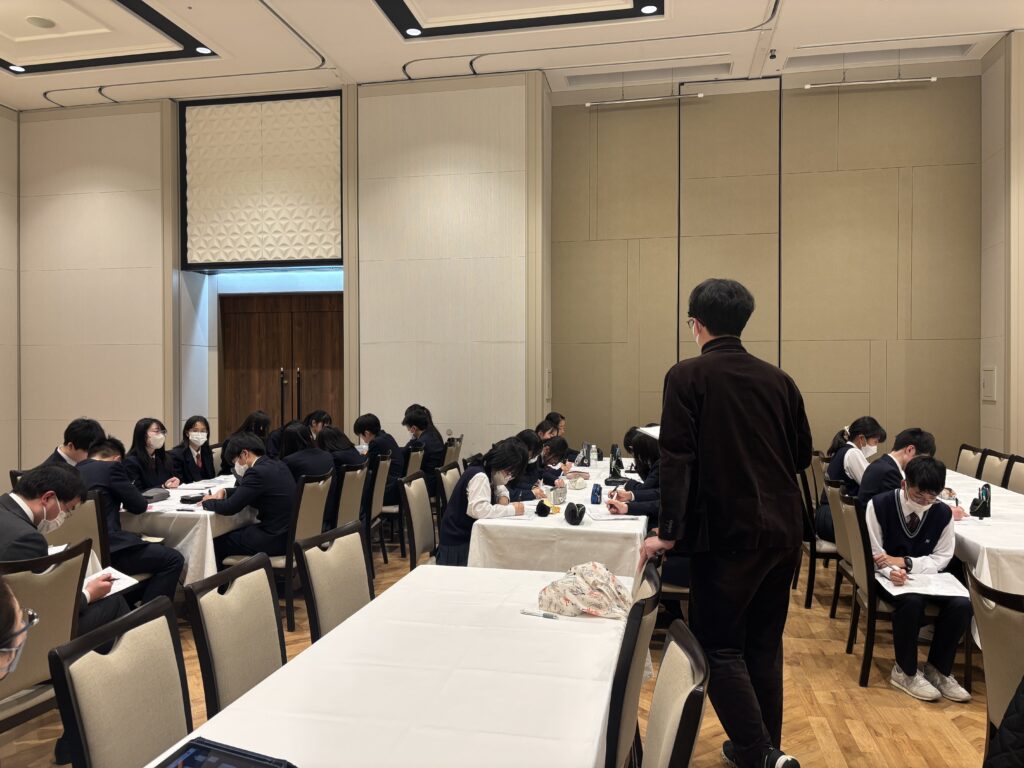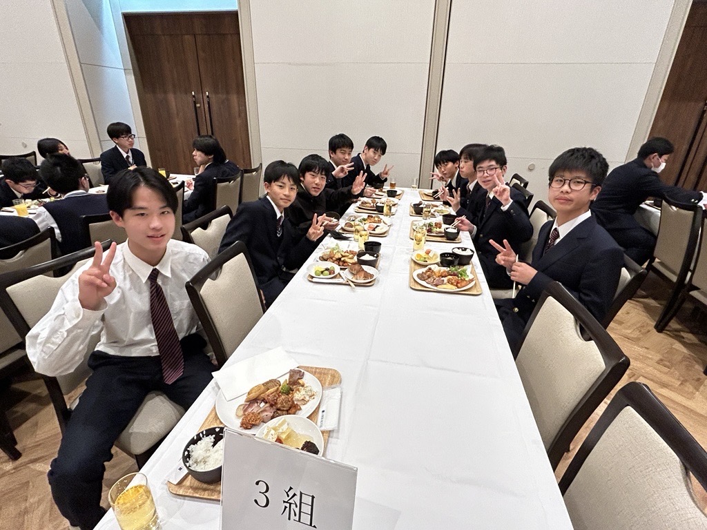 明日に備えて最後の宿泊先で夕食。ここでは大きなテーブルを囲んでの食事です。その後は明日のメインイベント、ユニバーサルスタジオジャパンに向けた話も含めて最後の班長会です。